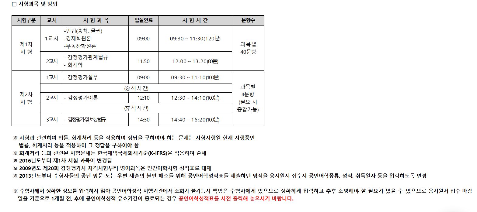 감정평가사 시험은 1차 시험과 2차 시험으로 구성됩니다.