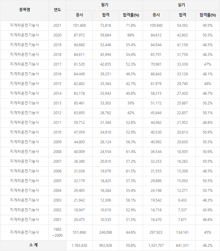 지게차운전기능사 응시자격 및 합격률